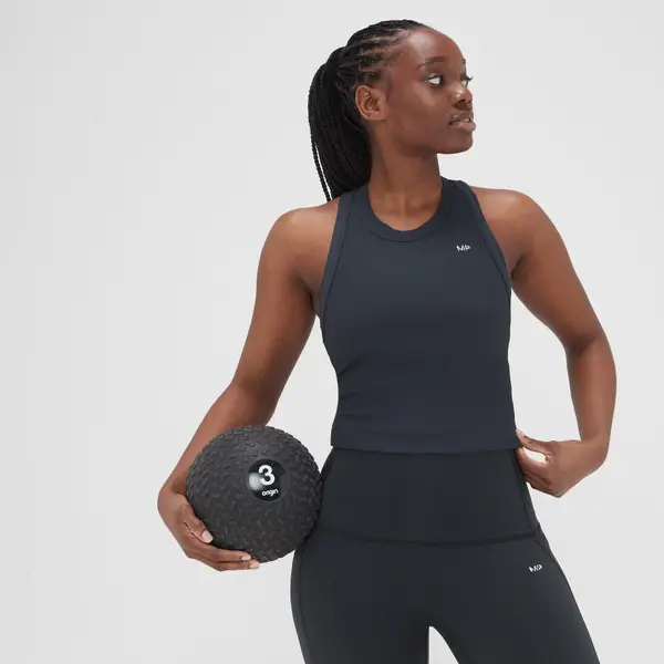 Train in alle comfort met het zacht aanvoelende vest van ribstof. Ontworpen met een iets kortere lengte en een racerback, dit stijlvolle kledingstuk is onmisbaar voor jouw trainingssessies.