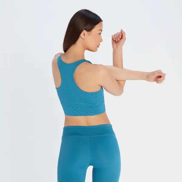 Onze Essentials Training sportbeha met print biedt lichte ondersteuning en is ontworpen voor dagelijks draagplezier. De minimalistische racerback is gemaakt voor bewegingsvrijheid en de elastische band onder de buste zorgt ervoor dat jij je de hele dag comfortabel voelt.