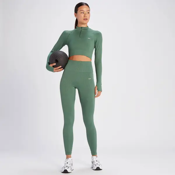 MP Tempo Croptop Van Ribstof Met Kwartrits Voor Dames – Dennegroen