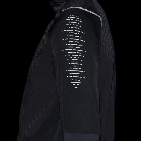 De Velocity Track Top heeft een stretchgeweven bovenlichaam en jersey panelen op de onderarmen voor een slanke pasvorm. Het trainingsjack heeft ook een zak met ritssluiting om je spullen in op te bergen en reflecterende details, zodat je goed zichtbaar bent.
