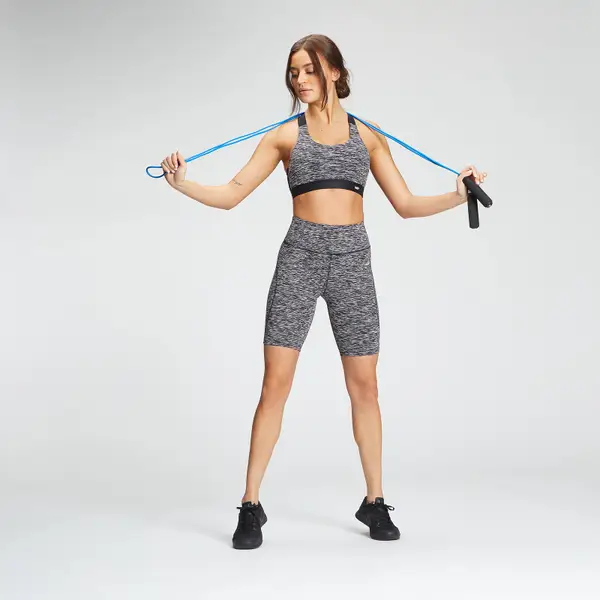 Krijg de ondersteuning die je nodig hebt met deze fietsshort met hoge tailleband. De short valt net boven de knie voor maximale bewegingsvrijheid en de voorgevormde naden benadrukken jouw spieren: van opwarmsprints tot aan cooldown-stretchoefeningen.