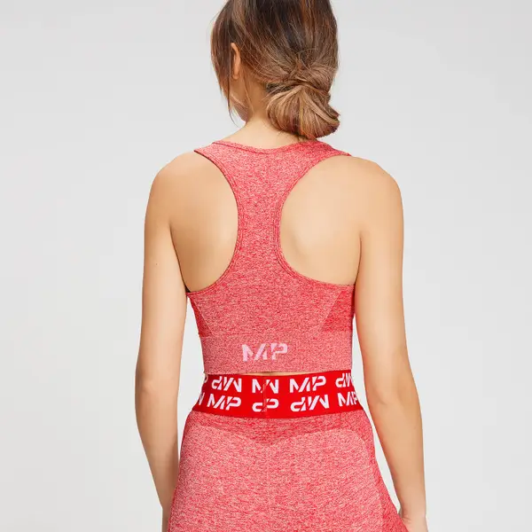 Hij heeft een superflatteus naadloos racerback-ontwerp en is gemaakt van zweetafvoerende en sneldrogende stof, waardoor hij geschikt is voor alle soorten training. Bovendien bieden de uitneembare cups de mogelijkheid om voor nog meer bedekking te zorgen.